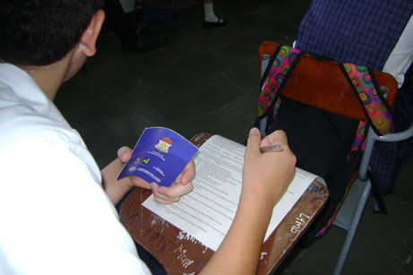 Folletos entregados a alumnos sobre la prevención