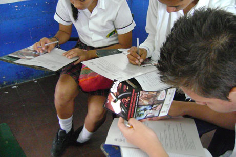 Alumnos realizando taller escrito de prevención